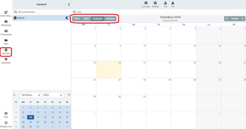 Napsauta ylävalikosta Calendar (Kalenteri) -osiota. -