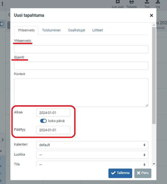 Tapahtuman lisääminen kalenteriin