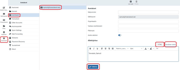 Sähköpostiallekirjoituksen luominen OpenSRS-sähköpostissa