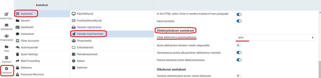 Allekirjoituksen automaattinen lisääminen viesteihin