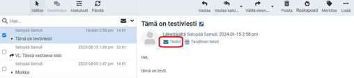 Jos sähköpostiviesti on lähetetty HTML-muodossa, voit nähdä myös sen HTML-lähteen.